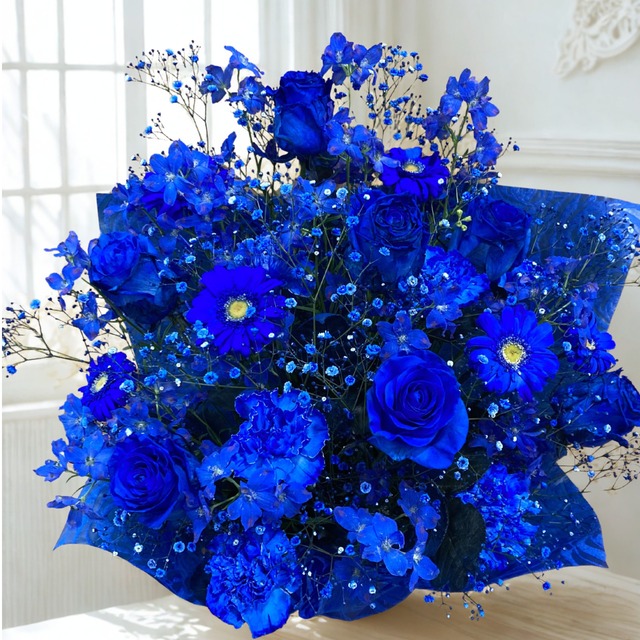 濃いブルーの美しさは、心を穏やかにし、贈った方の思いを素敵に形にしてくれます。